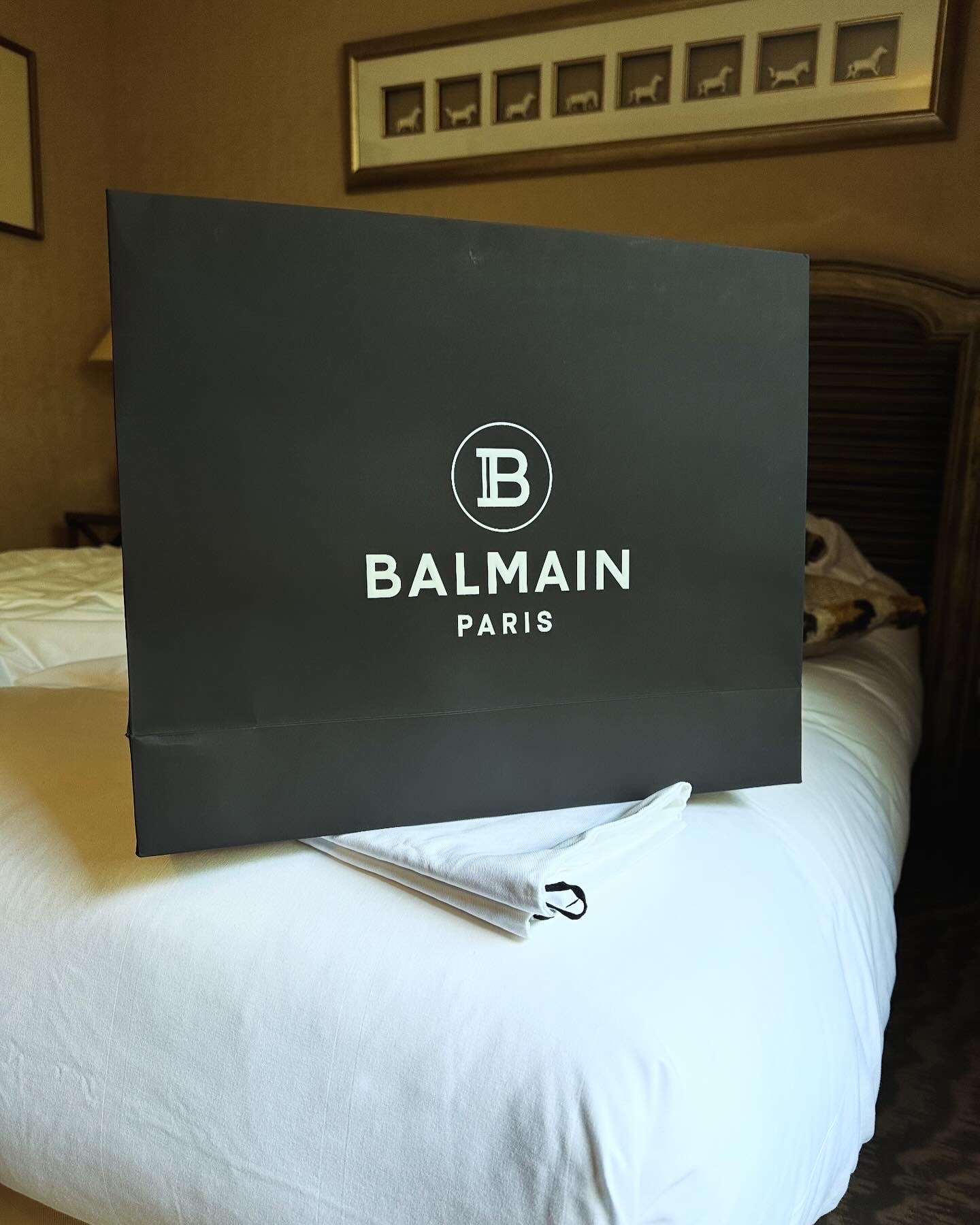 En me promenant sur les Champs-Élysées à Paris, je me suis arrêté dans la boutique. Balmain est classique. La vendeuse Claire était très serviable et agréable à côtoyer. Je devais la remercier d’avoir écouté mes histoires ! Elle m'a fait me sentir chez moi. J'ai hâte d'y retourner.